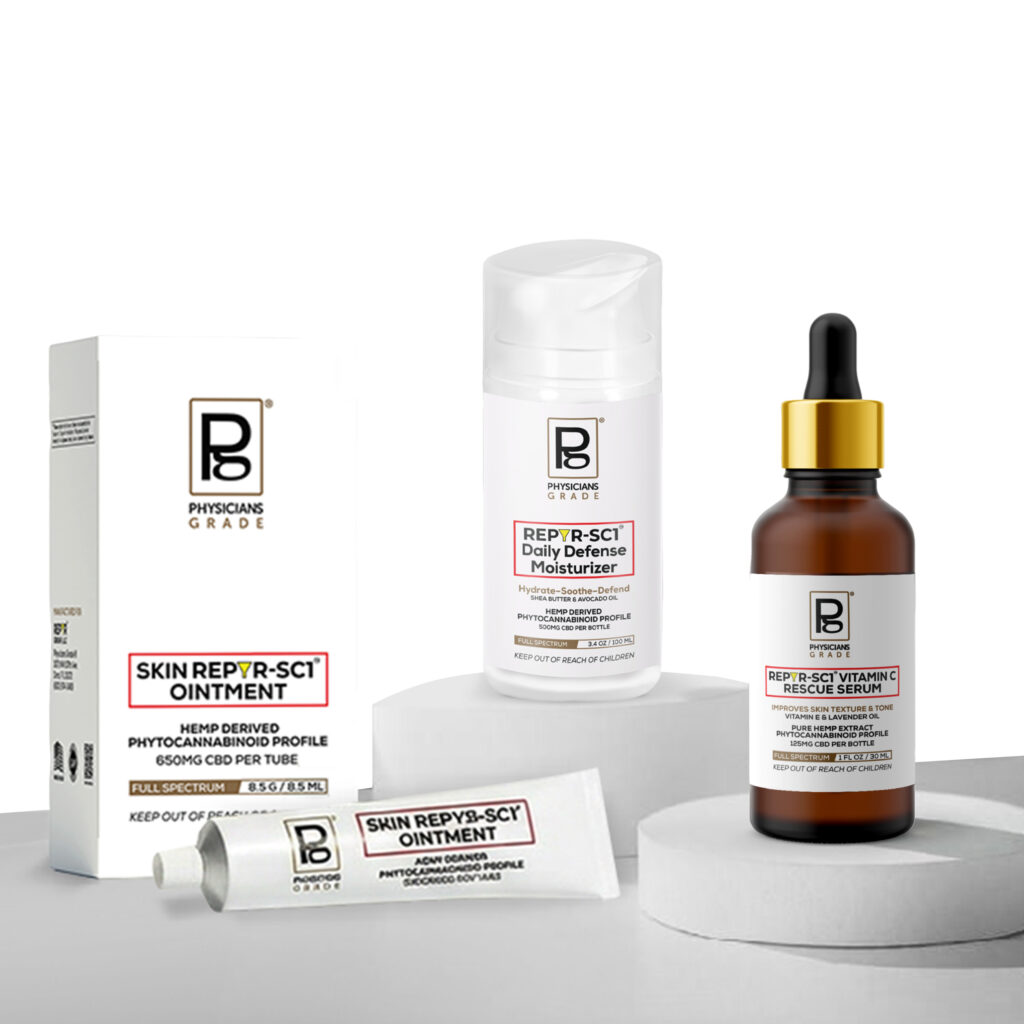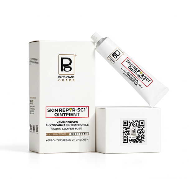 Physicians Grade Skin Repyr-SC1 Ointment is a powerful, full-spectrum topical treatment designed to support skin repair and reduce the appearance of dark spots, blemishes, and discoloration. Each 8.5g tube contains 650mg of hemp-derived phytocannabinoids, blended with rich hemp seed oil and Trihydroxystearin to help restore tone and texture at the source. Whether used as part of a targeted treatment or daily skin wellness routine, this professional-grade formula delivers noticeable results—fast.