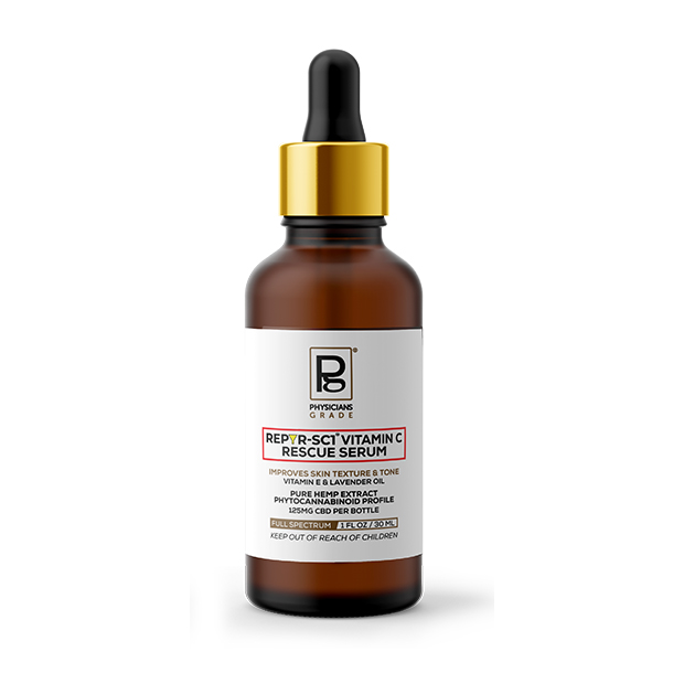Reveal radiant, rejuvenated skin with Physicians Grade Rescue Serum – a powerful Vitamin C serum infused with 125mg Full Spectrum CBD, Vitamin E, and Lavender Oil. Crafted with Repyr-SC1™ Phytocannabinoid Rich Hemp Oil, this lightweight serum visibly improves skin tone and texture while calming and nourishing the skin. Ideal for daily use, the formula supports collagen production, helps defend against environmental stressors, and promotes a brighter, more youthful complexion.